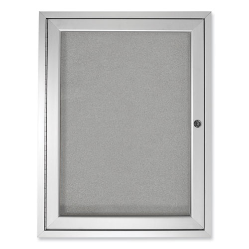 Ghent’s Enclosed Vinyl Bulletin Board is the perfect way to display messages, pictures, and important information securely. The message center is made with a vinyl tack surface that hides pin holes and holds up under repeated tacking, providing years of reliable service. When used outside, this vinyl board will not break down or mold, unlike cork enclosed boards. You do not have to worry about damage from weather or humidity as long as you hang the board under an awning or overhang. This 1-door enclosed bulletin board is protected using shatter-proof acrylic panels, full-length door hinges, and locks that are flush with the frame. You can install the board in high-traffic, public areas without worrying about damage or tampering. Hidden corner brackets allow the message center to sit flush against the wall without any visible hardware which adds protection from vandalism. The colored vinyl surface is paired with a satin aluminum frame and includes two keys. Perfect for indoor and outdoor use.