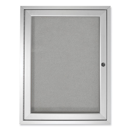 Ghent’s Enclosed Vinyl Bulletin Board is the perfect way to display messages, pictures, and important information securely. The message center is made with a vinyl tack surface that hides pin holes and holds up under repeated tacking, providing years of reliable service. When used outside, this vinyl board will not break down or mold, unlike cork enclosed boards. You do not have to worry about damage from weather or humidity as long as you hang the board under an awning or overhang. This 1-door enclosed bulletin board is protected using shatter-proof acrylic panels, full-length door hinges, and locks that are flush with the frame. You can install the board in high-traffic, public areas without worrying about damage or tampering. Hidden corner brackets allow the message center to sit flush against the wall without any visible hardware which adds protection from vandalism. The colored vinyl surface is paired with a satin aluminum frame and includes two keys. Perfect for indoor and outdoor use.