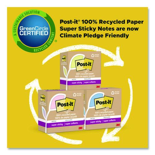Post-it 100% Recycled Paper Super Sticky Notes are made from 100% recycled paper and feature two times the sticking power to make sure your message stays put. The water-based adhesive reliably sticks to doors, windows and walls, so you can take your to-do list anywhere. Succeed in your everyday tasks and feel good knowing these notes are made in a zero-waste-to-landfill plant. Packaging is also made from 100% recycled paper.