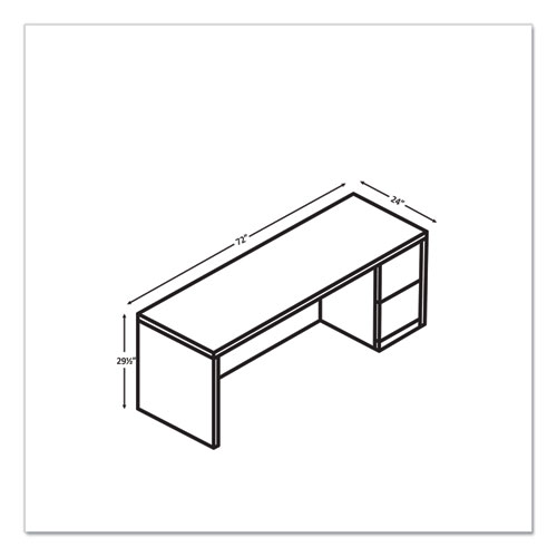 Product Details** Global Product Type Single Pedestal Credenza Desks Color Family Walnut Pedestal Count 1 Pedestal Types Hanging: Full-Height Drawer Configuration Right: File/File Overall Width 72″ Top Material Particleboard,Thermal Fused Laminate (TFL) Color(s) Kingswood Walnut Depth (Max) 24″ Overall Height 29.5″ Number of Drawers 2 Edge Detail Profile Square Base Material Particleboard,Thermal Fused Laminate (TFL) Top Thickness 1″ For Use With HON® 10500 Series™ Kingswood Walnut Single Pedestal Desks and Bridges Series Name HON® 10500 Series™ Product Biodegradability Indicator N Product Biodegradability in Days 0 Product Compostability Indicator N Compliance Standards Level 2 Certified,Meets or Exceeds ANSI/BIFMA Standards,Meets or Exceeds ISTA Standards,SCS Indoor Advantage Certified Pre-Consumer Recycled Content Percent 35% Post-Consumer Recycled Content Percent 3% Total Recycled Content Percent 38% Country Of Origin US Carton Weight 226 lbs. Carton Pack Quantity 1 EA Pack Quantity 0 UPC 194446596910 UNSPSC 56101701 Shipping Weight & Item Dimensions Weight 226 lbs. Length 74.38 in Height 31.38 in Width 26.38 in Warranty Backed by the HON Full Lifetime Warranty.