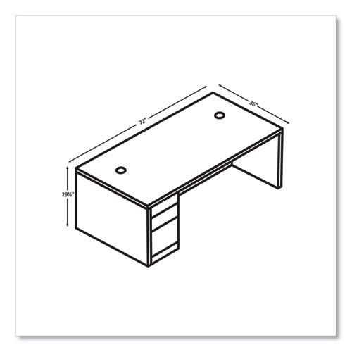 Product Details** Global Product Type Pedestal Office Desks Worksurface Shape Rectangular Color Family Walnut Pedestal Count 1 Keyboard/Mouse Platform Indicator No CPU Holder/Platform Indicator No Number of Drawers 3 Series Name HON® 10500 Series Worksurface/Base Color Pinnacle Worksurface Material Particleboard,Thermal Fused Laminate (TFL) Worksurface Width 72″ Worksurface Depth 36″ Worksurface Thickness 1″ Edge Detail Profile Square Base Material Particleboard,Thermal Fused Laminate (TFL) Overall Width (Max) 72″ Overall Depth (Max) 36″ Overall Height (Max) 29.5″ Pedestal Types Hanging: Full-Height Drawer Type Left: Box/Box/File Number of Shelves 0 Caster/Glide/Wheel (4) Leveling Glides Book Box Indicator No Weight (Fully Assembled) 278 lbs Product Biodegradability Indicator N Product Biodegradability in Days 0 Product Compostability Indicator N Compliance Standards Level 2 Certified,Meets or Exceeds ANSIBIFMA standards.,SCS Indoor Advantage Certified,SCS Indoor Advantage Gold Certified Pre-Consumer Recycled Content Percent 3% Post-Consumer Recycled Content Percent 69% Total Recycled Content Percent 72% Country Of Origin US Carton Weight 278 lbs. Carton Pack Quantity 1 EA Pack Quantity 0 UPC 752856932430 UNSPSC 56101703 Shipping Weight & Item Dimensions Weight 278 lbs. Length 74.38 in Height 31.38 in Width 38.38 in Warranty Backed by the HON Full Lifetime Warranty.