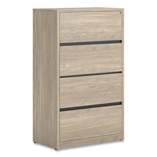 Product Details** Global Product Type Lateral File Cabinets Number of Drawers 4 Drawer Configuration File Anti-Tip Mechanism Indicator No Color Family Walnut Pedestal Sub-Type Indicator No Caster Indicator No Color(s) Kingswood Walnut Overall Width 36″ Overall Depth 20″ Overall Height 59.13″ Height Without Casters 59.13″ Base Material Particleboard,Thermal Fused Laminate (TFL) Top Material Particleboard,Thermal Fused Laminate (TFL) Top Thickness 1″ Edge Detail Profile Square Glide/Feet Indicator Yes Glide/Feet Details (4) Leveling Glides Compatible Flooring Type(s) Hard Flooring,High-Pile Carpet,Low-Pile Carpet Document Size Accommodation Legal,Letter Drawer Width-File Drawer 31.7″ Drawer Depth-File Drawer 20″ Drawer Height-File Drawer 10″ Door Quantity 0 Series Name HON® 10500 Series™ Product Biodegradability Indicator N Product Biodegradability in Days 0 Product Compostability Indicator N Package Includes (4) Sets of Hanging File Rails Compliance Standards Level 2 Certified,Meets or Exceeds ANSI/BIFMA Standards,Meets or Exceeds ISTA Standards,SCS Indoor Advantage Certified Pre-Consumer Recycled Content Percent 35% Post-Consumer Recycled Content Percent 3% Total Recycled Content Percent 38% Country Of Origin US Carton Weight 305 lbs. Carton Pack Quantity 1 EA Pack Quantity 0 UPC 194446238452 UNSPSC 56101702 Shipping Weight & Item Dimensions Weight 305 lbs. Length 37.94 in Height 62.87 in Width 21.81 in Warranty Backed by the HON Full Lifetime Warranty.