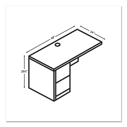 Desk and Return sold and shipped separately—ORDER BOTH. Exclusive reinforced pedestal construction makes this HON return withstand daily wear and tear like no other. Pedestal drawers open fully to give easy access to all contents. Drawers glide on steel ball-bearings for years of smooth, reliable performance. Premium, multi-ply laminate stands up to scratches, spills, stains and boiling liquids, and holds up under heavy use. Full-height modesty panel for privacy. All drawers lock using the same key; lock core can be changed as security needs require.
