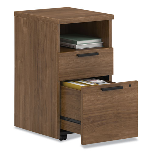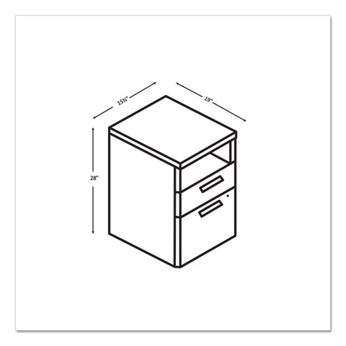 Product Details** Global Product Type Vertical Desk Pedestals Number of Drawers 2 Drawer Configuration Box/File Anti-Tip Mechanism Indicator No Color Family Walnut Pedestal Sub-Type Indicator Yes Caster Indicator Yes Color(s) Pinnacle Pedestal Count 1 Pedestal Orientation Left/Right Pedestal Types Freestanding: Full-Height Overall Width 15.75″ Overall Depth 19″ Overall Height 28″ Base Material Particleboard,Thermal Fused Laminate (TFL) Top Material Particleboard,Thermal Fused Laminate (TFL) Top Thickness 1.12″ Edge Detail Profile Square Corner/Edge Protector PVC Edge Band Caster Details Four 2″ Non-Locking Twin-Wheel Swivel Casters Caster Surface Texture Hard/Soft Glide/Feet Indicator No Compatible Flooring Type(s) Hard Flooring,Low-Pile Carpet Document Size Accommodation Legal,Letter Drawer Width-File Drawer 12.13″ Drawer Depth-File Drawer 18″ Drawer Height-File Drawer 9.25″ Drawer Width-Box Drawer 12.13″ Drawer Depth-Box Drawer 18″ Drawer Height-Box Drawer 3.06″ Additional Compartment Count 1 Additional Compartment Details Open-Format 12.13″ x 18″ x 3.06″ Top Shelf Series Name HON® 10500 Series™ For Use With HON® 10500 Series™ Desk Shells, 10700 Series™ Desk Shells Product Biodegradability Indicator N Product Biodegradability in Days 0 Product Compostability Indicator N Package Includes Open Shelf + Box/File Format—Full-height pedestal with box-drawer-sized open-format shelf on top. Single keyed lock for middle box and lower file drawers. Compliance Standards Level 2 Certified,Meets or Exceeds ANSI/BIFMA Standards,Meets or Exceeds ISTA Standards,SCS Indoor Advantage Certified Pre-Consumer Recycled Content Percent 35% Post-Consumer Recycled Content Percent 3% Total Recycled Content Percent 38% Disclaimer Statement (2) Keys Country Of Origin US Carton Weight 73 lbs. Carton Pack Quantity 1 EA Pack Quantity 0 UPC 752856932270 UNSPSC 56101712 Shipping Weight & Item Dimensions Weight 73 lbs. Length 22.25 in Height 31.56 in Width 18 in Warranty Backed by the HON Full Lifetime Warranty.
