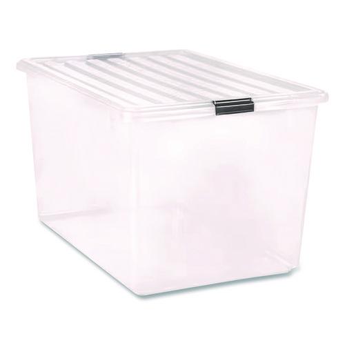 132 Qt. Latch Lid Storage Box, 20.9" x 28.8" x 17.8", Clear/Black132 Qt. Latch Lid Storage Box, 20.9″ x 28.8″ x 17.8″, Clear/Black