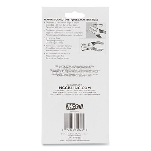 Punches diamond shape holes in up to 15 sheets of 20-lb paper.