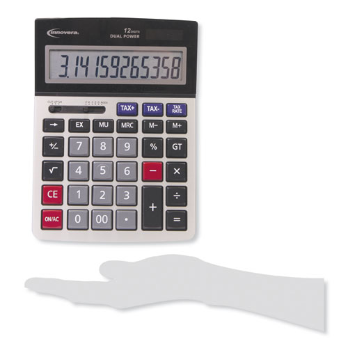 Ideal for everyday calculations and small business tasks, this easy-to-read calculator features an extra-large 0.78″ (20mm) digit size. The angled display prevents overhead glare and eyestrain. Large, commercial-quality keys make it simple to enter numbers correctly the first time. The 12-digit display handles longer equations. Dual solar/battery power ensures the calculator is ready to use in any lighting conditions. Tax Calculation, Markup, and Grand Total keys, along with decimal slide switch, provide added functionality for business needs.