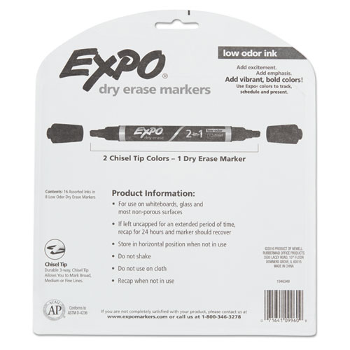Product Details** Global Product Type Dry Erase Markers Marker Ink Type Dry Erase Marker Grade General Use Marker Tip Type Chisel Color Family Multicolor Marker Tip Size (text) Fine/Broad Marker Color(s) Assorted Marker Color Assortment Aqua/Amethyst,Aquamarine/Sapphire,Green/Garnet,Lime/Plum,Orange/Black,Pink/Brown,Purple/Emerald,Red/Blue Marker Series 2-in-1 Product Biodegradability Indicator N Product Biodegradability in Days 0 Product Compostability Indicator N Pre-Consumer Recycled Content Percent 0% Post-Consumer Recycled Content Percent 0% Total Recycled Content Percent 0% Country Of Origin CN Carton Weight 14 lbs. Carton Pack Quantity 36 PK Pack Quantity 8 EA UPC 071641099609 UNSPSC 44121708 Shipping Weight & Item Dimensions Weight 0.22 lbs. Length 8.44 in Height 0.78 in Width 7.19 in
