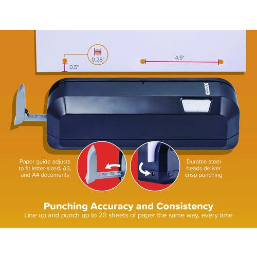 20-Sheet Electric Three-Hole Punch, 9/32″ Holes, Black