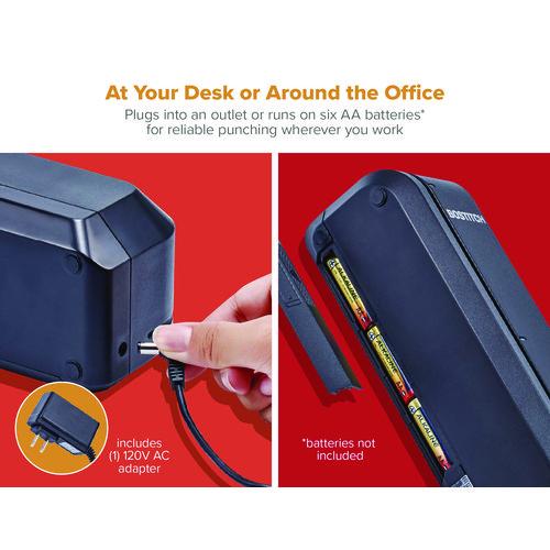 • Powered by a 120 V AC adapter or six AA batteries (not included), providing reliable punching power wherever you are.