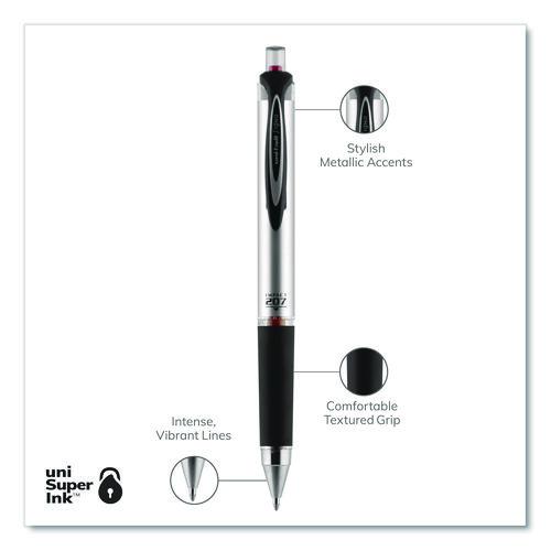 Make an impact with 207 IMPACT RT Gel Pens from uni-ball featuring a 1.0 mm bold point with a stainless steel tip that resists bending and breaking. Even-flowing, pigment-based gel ink renders an outstanding ink laydown for a smooth writing experience and strikingly bold lines. Use these retractable gel pens for everyday writing tasks, check signing and all of your important signatures, trusting its quick-drying uni Super Ink. Exclusive uni Super Ink technology entrenches the gel ink deep into the paper, preventing document alteration, water damage or fading. The 1.0 mm point delivers bold writing with a silky finish. A soft rubber grip helps you continue writing without fatigue while maintaining precision and detail throughout your tasks, and when your writing is complete, the innovative clip auto retracts the tip, protecting against unwanted gel ink marks and stains. Lend a vivid touch to your writing with these sophisticated retractable gel pens that glide smoothly for distinct and neat writing.