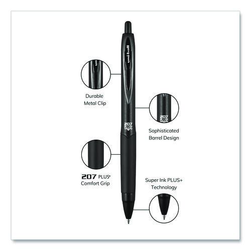 Take your writing to new heights with 207 Plus+ Retractable Gel Pens. Their precision point delivers rich, clean lines, and their advanced gel ink produces an enhanced smudge- and smear-free writing experience with exceptional smoothness, fast drying times and extra-bold line intensity, ensuring that every word you write stands out. Ideal for everyday writing tasks, jotting down notes and signing all of your important documents, Super Ink PLUS+ also entraps the gel in paper to produce fraud-, fade- and water-resistant documents that resist check-washing and bleaching. A seamless rubber grip provides a comfortable hold that helps you complete long writing projects with precise control. Refine your style with the sophisticated profile of 207 Plus+ gel pens.