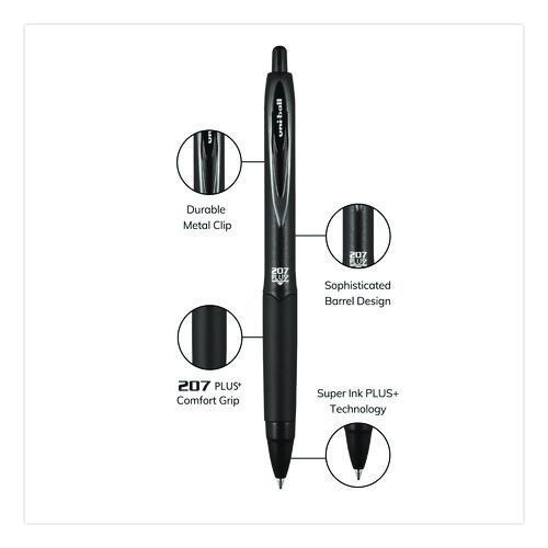 Product Details** Global Product Type Gel Pens Pen Style Retractable Pen Tip Type Conical Pen Point Size Type Medium Color Family Black Erasable Ink No Refillable Yes Pen Sub-Brand & Product Family 207 Plus+ Pen Type Gel Pen Pen Point Size 0.7 mm Pen Ink Color(s) Black Pen Barrel Color(s) Black Low-Viscosity Ink No Special Ink Properties uni Nano Fiber Super Ink™ PLUS+ Pen Grip Type Rubber Visible Ink Supply No Pocket Clip Indicator Yes Product Biodegradability Indicator N Product Biodegradability in Days 0 Product Compostability Indicator N Pre-Consumer Recycled Content Percent 0% Post-Consumer Recycled Content Percent 0% Total Recycled Content Percent 0% Country Of Origin JP Carton Weight 1 lbs. Carton Pack Quantity 12 DZ Pack Quantity 0 UPC 030246704622 UNSPSC 44121704 Shipping Weight & Item Dimensions Weight 0.4 lbs. Length 5.86 in Height 3.25 in Width 1.1 in