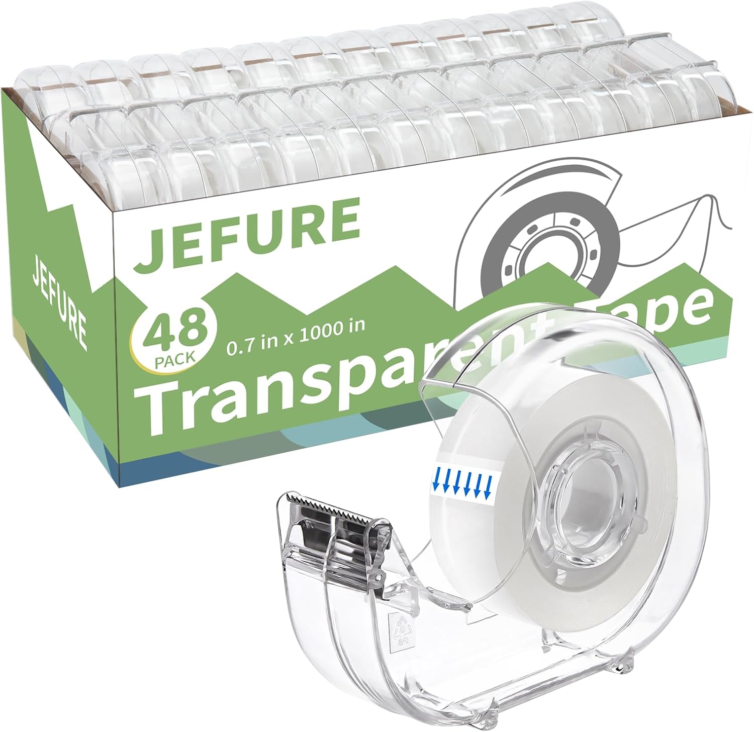 Valuable Packing: You can get 24 pcs transparent dispensers, 3.94 in X 0.98 in X 2.95 in. And 24 complimentary clear wrapping tapes, 0.7 in x 28 yd. This transparent tape package is enough for you to use for a long time
