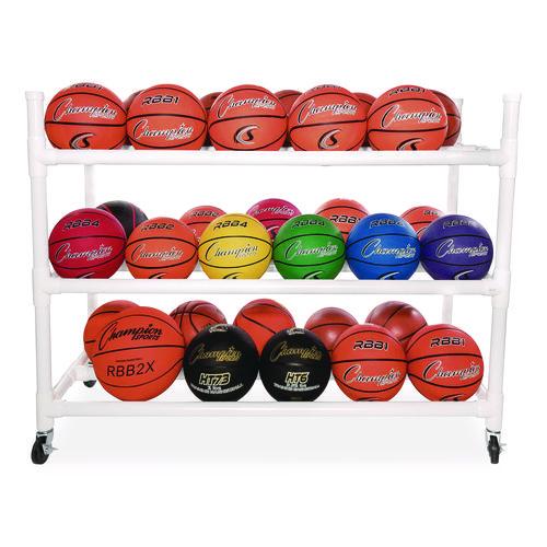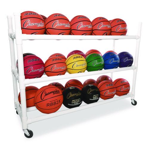 The Champion Sports Heavy Duty Cart is the ultimate in indoor and outdoor ball storage. This cart holds up to 30 basketballs and the four upright top bars are great for hanging accessories. Made of high-quality heavy-duty plastic that won’t corrode, chip or peel. This cart features non-marring, heavy-duty swivel casters that enable easy and smooth transport over any surface.