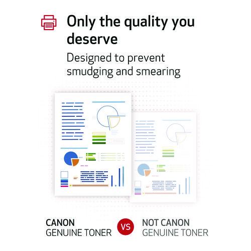 Canon® genuine toner cartridges are designed to deliver the best possible print every time. Rich and consistent output with no smudging or smearing—just a quality print.