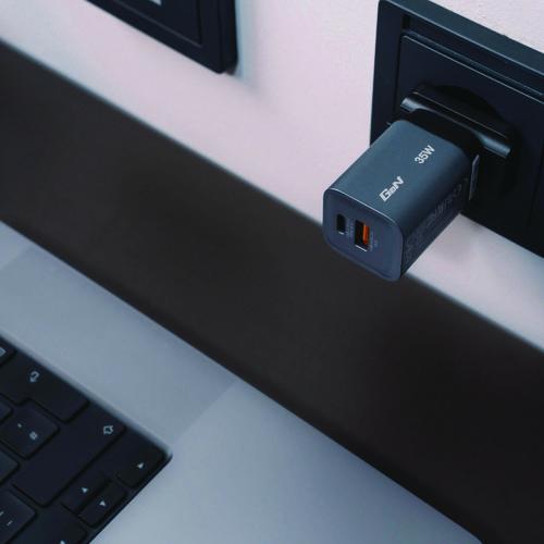 35 W 2-Port GaN Wall Charger, Black/Gray