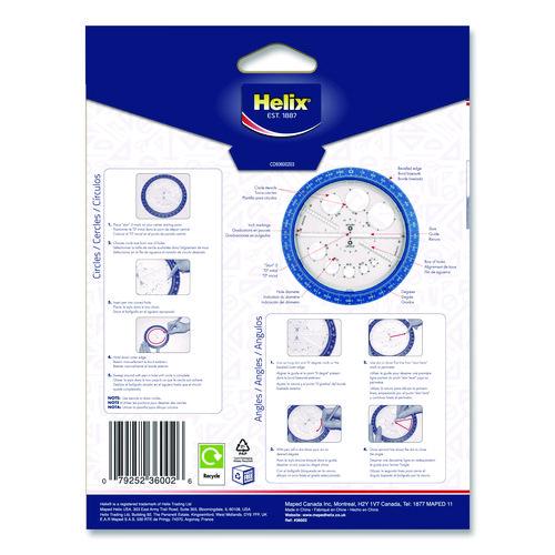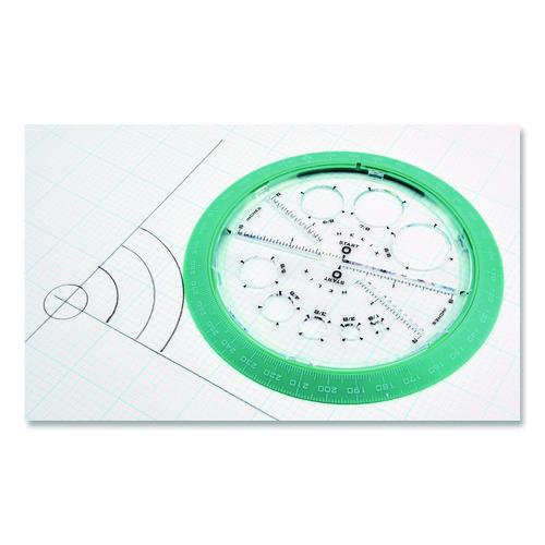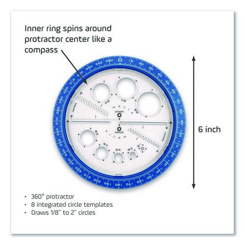 The 360° Angle and Circle Maker combines three Geometry tools into one innovative and exciting product! The 6″ diameter outer ring acts as a classic protractor, while the separate inner circle easily rotates to draw circles just like a compass. Eight integrated circle templates built into the inner ring are for drawing accurate small circles far easier than using a standard compass. Unique product is much easier for young children to manipulate and use than a standard compass, and the integrated design means that they can more easily understand how angles and measurements correspond with each other. The perfect tool for young students working on mastering geometry and angles.