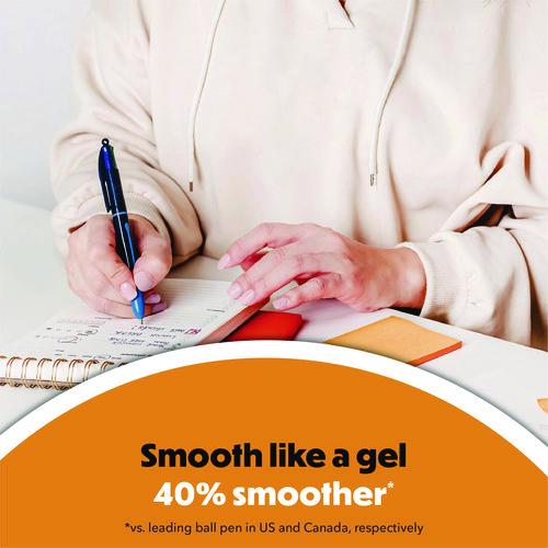 Product Details** Global Product Type Multifunction Pens Pen Style Retractable Pen Tip Type Conical Pen Point Size Type Medium Color Family Multicolor Erasable Ink No Refillable No Pen Sub-Brand & Product Family 4-Color™ Smooth Pen Type Multi-Color Ballpoint Pen Pen Point Size 1 mm Pen Ink Color(s) Black/Blue/Green/Red Pen Barrel Color(s) Black/Blue Permanent/Washable Ink Washable Archival-Quality Ink No Airplane-Safe Ink Yes Low-Viscosity Ink No Special Ink Properties BIC® Smooth Ballpoint Ink Pen Grip Type Smooth Visible Ink Supply No Pocket Clip Indicator Yes Product Biodegradability Indicator N Product Biodegradability in Days 0 Product Compostability Indicator N Pre-Consumer Recycled Content Percent 0% Post-Consumer Recycled Content Percent 0% Total Recycled Content Percent 0% Country Of Origin FR Carton Weight 7 lbs. Carton Pack Quantity 18 PK Pack Quantity 12 EA UPC 070330385177 UNSPSC 44121700 Shipping Weight & Item Dimensions Weight 0.35 lbs. Length 1.31 in Height 2.75 in Width 6 in
