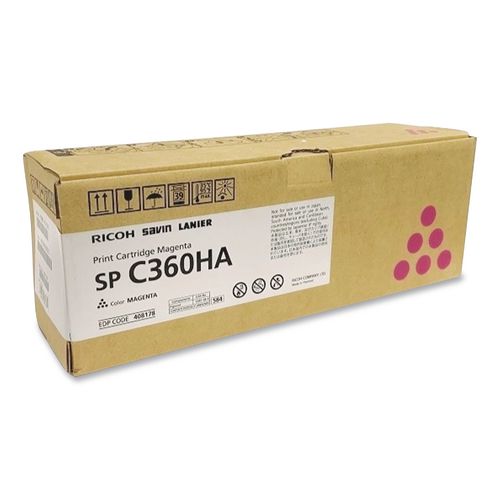 Product Details** Global Product Type Toner/Toner Cartridges OEM/Compatible OEM Supply Type Toner Yield Type High-Yield Device Types Laser Printer Color(s) Magenta Page-Yield 5,000 Remanufactured No For Use With Ricoh® SP C360DNw, SP C360SFNw Product Biodegradability Indicator N Product Biodegradability in Days 0 Product Compostability Indicator N Pre-Consumer Recycled Content Percent 0% Post-Consumer Recycled Content Percent 0% Total Recycled Content Percent 0% Country Of Origin TH Carton Weight 1 lbs. Carton Pack Quantity 1 EA Pack Quantity 0 UPC 026649081781 UNSPSC 44103103 Shipping Weight & Item Dimensions Weight 1.3 lbs. Length 4.18 in Height 5.52 in Width 14.18 in