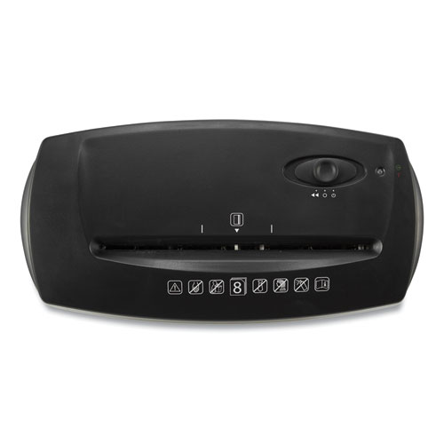 Shreds up to 8 sheets at a time into small cross-cut particles. Automatically starts and stops for convenience. Also, safely shreds staples and plastic credit cards. Runs continuously for up to two minutes before cooling down period is needed. 3.3-gallon waste bin with easy lift-off head.