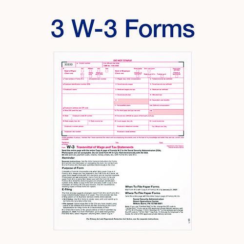 Product Details** Global Product Type Tax Forms Form Type Details W-2,W-3 Dated No Forms Per Page 2 Format Indicator Unbound Copy Types Six-Part Carbonless Color Family White Fiscal Year 2024 Forms Per Page Layout Vertical: Two Down Form Size 8 x 5.5 Sheet Size 8.5 x 11 Form Quantity (Total) 10 Principal Heading(s) W-2 Paper Color(s) White Printer Compatibility Inkjet,Laser Print and Ruling Color(s) Black Product Biodegradability Indicator N Product Biodegradability in Days 0 Product Compostability Indicator N Package Includes (10) Envelopes,(3) W-3 Summary & Transmittal Forms Compliance Standards Meets or Exceeds IRS Specifications Pre-Consumer Recycled Content Percent 0% Post-Consumer Recycled Content Percent 0% Total Recycled Content Percent 0% Country Of Origin US Carton Weight 12 lbs. Carton Pack Quantity 20 PK Pack Quantity 20 EA UPC 087958229080 UNSPSC 14111814 Shipping Weight & Item Dimensions Weight 0.2 lbs. Length 11 in Height 0.25 in Width 8.5 in