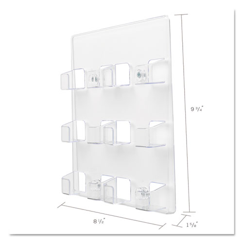 Product Details** Global Product Type Business Card Displays/Holders Color(s) Clear Material(s) Plastic For Card Size Business Card Card Capacity 480 Card Holder Type Business Card Holder Width 8.5″ Depth 1.63″ Height 9.75″ Product Biodegradability in Days 0 Pre-Consumer Recycled Content Percent 0% Post-Consumer Recycled Content Percent 0% Total Recycled Content Percent 0% Special Features Six-Pocket Wall Mount-Holds approximately 80 cards per pocket. Country Of Origin CN Carton Weight 4 lbs. Carton Pack Quantity 6 EA Pack Quantity 0 UPC 079916706016 UNSPSC 44111518 Shipping Weight & Item Dimensions Weight 0.351 lbs. Length 10.1 in Height 0.8 in Width 8.5 in