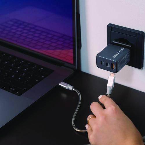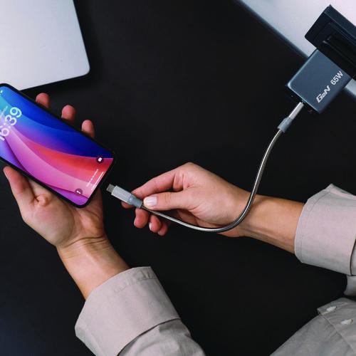 Galliam Nitride (GaN) technology delivers highpowered, fast, efficient charging, generates less heat and allows for smaller and lighter chargers, making them ultraportable. The GNC-65 charger is made with high-quality, flameresistant materials and features four safety protection systems to ensure your safety while charging.