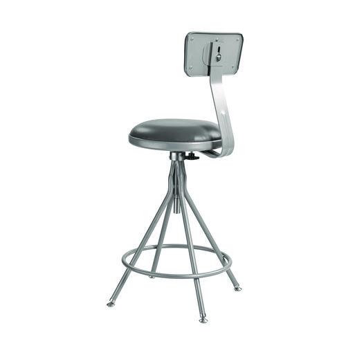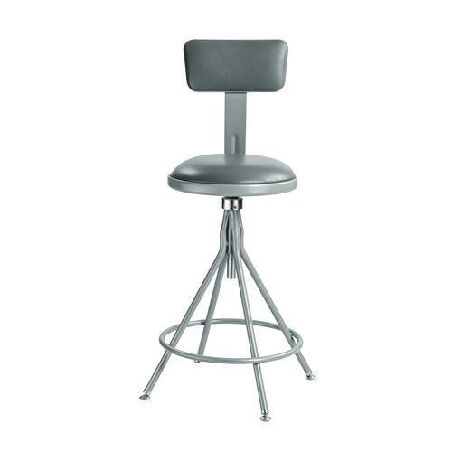 Institutions interested in ultimate strength, comfort and access for their hands-on educational environments need look no further than the NPS 6500 Series heavy-duty padded swivel stools with backrests. These reliable stools feature a sturdy frame of 18-gauge steel tubing securely welded to a 14″ diameter seat pan. Riveted through the steel pan are 1.5″ thick vinyl cushioning that will provide years of dependable use. Swivel seat spins with ease 360 degrees enabling users to maximize their workspace. Footrest ring is securely bonded to each leg with four spotwell contact points for extra fortification. Features height-adjustable seat and adjustable padded backrest that can be moved up/down and forward/back. Rotating metal floor glides keep the stool level and prevent any floor damage.