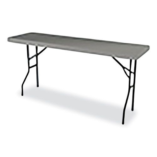Product Details** Global Product Type Multiuse Folding & Nesting Tables Top Shape Rectangular Color Family Gray Maximum Weight Capacity Supports up to 250 lbs evenly distributed Overall Width 72″ Height (Max) 29″ Base Color Gray Top Color Charcoal Gray Overall Depth 18″ Top Material High-Density Polyethylene Base/Leg Material Steel Base Type (4) Folding Legs Folded Height 3″ Edge Detail Profile Beveled, Radius Edge Product Biodegradability Indicator N Product Biodegradability in Days 0 Product Compostability Indicator N Green Information Tops are made with approximately 35% pre-consumer recycled content Compliance Standards Meets or Exceeds ANSI/BIFMA Standards,TAA and Berry Amendment Compliant Pre-Consumer Recycled Content Percent 0% Post-Consumer Recycled Content Percent 0% Total Recycled Content Percent 0% Country Of Origin US Carton Weight 29 lbs. Carton Pack Quantity 1 EA Pack Quantity 0 UPC 810610652014 UNSPSC 48101926 Shipping Weight & Item Dimensions Weight 29 lbs. Length 18 in Height 3 in Width 72 in Warranty Manufacturer’s limited five-year warranty.