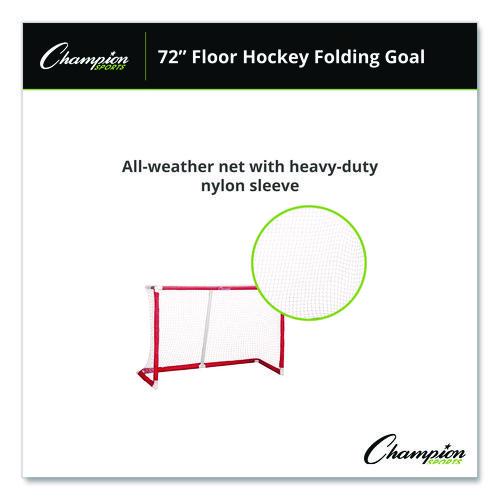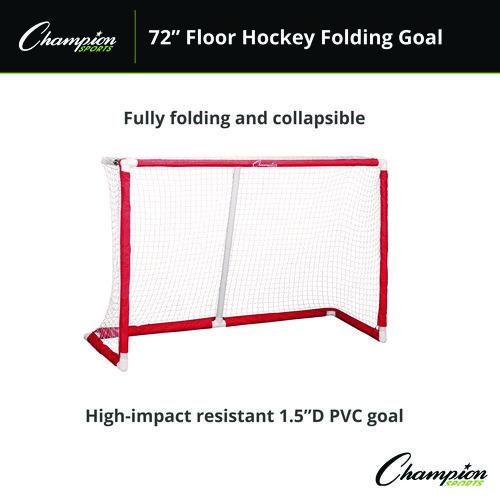 Made with 1.5″ PVC material and a heavy-duty nylon sleeve, the Champion Sports 72 Inch Floor Hockey Collapsible Goal is weather-resistant, meaning it can be used for indoor floor hockey games or outdoor street hockey games. The custom fittings and fully foldable design allow the top and bottom of the hockey net to collapse into a convenient size for storage and transportation, making it simple to move from the playground or the court to storage.