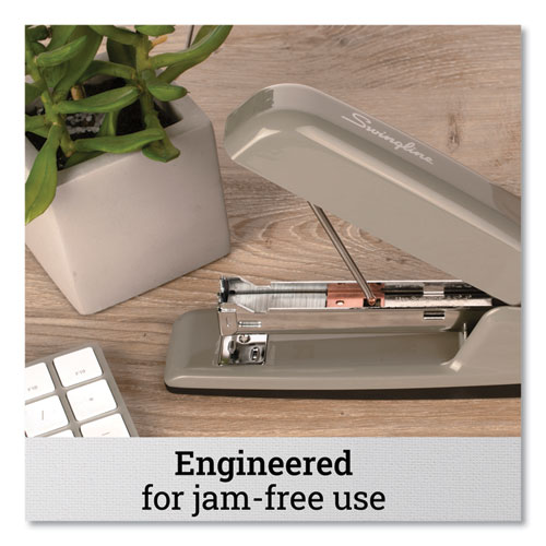 Product Details** Global Product Type Full-Size Desktop Staplers High Capacity Stapling No Flat Clinch Plate No Power Source(s) Manual Tacking Yes Color Family Gray Staple Loading Top Staple Capacity Full Strip (210 Staples) Type of Staple Used S.F.® 4® Premium Sheet Capacity 30 Replacement Staples Swingline® 35108, 35450, 35556 Leg Size 0.25″ Crown Size 0.5″ Color(s) Steel Gray Material(s) Metal Throat Depth 3.63″ Product Biodegradability in Days 0 Pre-Consumer Recycled Content Percent 0% Post-Consumer Recycled Content Percent 0% Total Recycled Content Percent 0% Footnote 1 All sheet capacities are based on 20-lb. bond Country Of Origin CN Carton Weight 17 lbs. Carton Pack Quantity 12 EA Pack Quantity 0 UPC 074711747592 UNSPSC 44121615 Shipping Weight & Item Dimensions Weight 1.35 lbs. Length 7.44 in Height 1.94 in Width 2.44 in Warranty Manufacturer’s limited lifetime warranty.