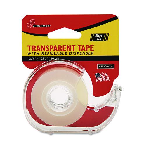 Multi-purpose transparent tape with matte or glossy finish comes in a durable, fully enclosed, refillable, hand-held dispenser. Tape measures 3/4″ x 36 yards. Made with 3M quality tapes. Refill dispenser with one inch core tapes.
