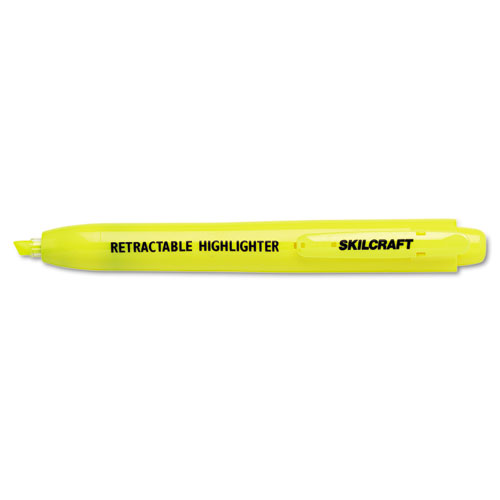 7520015548210, SKILCRAFT Retractable Highlighter, Yellow Ink, Chisel Tip, Yellow Barrel, Dozen