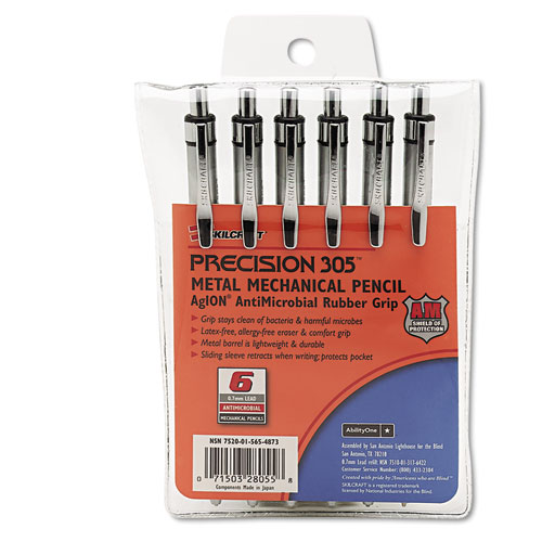 7520015654875, SKILCRAFT Precision 305 Metal Barrel Mechanical Pencil, 0.5 mm, Black Lead, Silver Barrel, 6/Pack7520015654875, SKILCRAFT Precision 305 Metal Barrel Mechanical Pencil, 0.5 mm, Black Lead, Silver Barrel, 6/Pack