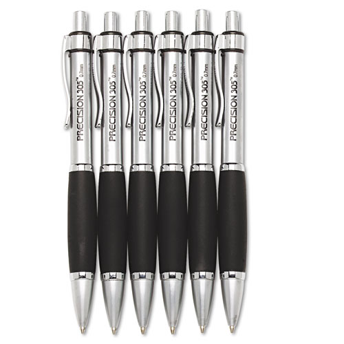 7520015654875, SKILCRAFT Precision 305 Metal Barrel Mechanical Pencil, 0.5 mm, Black Lead, Silver Barrel, 6/Pack