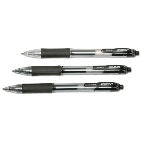 Product Details** Global Product Type Gel Pens Pen Style Retractable Pen Tip Type Conical Pen Point Size Type Medium Color Family Black Erasable Ink No Refillable No Pen Sub-Brand & Product Family SKILCRAFT® Pen Type Gel Pen Pen Point Size 0.7 mm Pen Ink Color(s) Black Pen Barrel Color(s) Clear/Black Low-Viscosity Ink No Special Ink Properties Water-Based Gel Pen Grip Type Non-Slip Visible Ink Supply Yes Pocket Clip Indicator Yes Product Biodegradability in Days 0 Pre-Consumer Recycled Content Percent 0% Post-Consumer Recycled Content Percent 0% Total Recycled Content Percent 0% Country Of Origin US Carton Weight 5 lbs. Carton Pack Quantity 12 DZ Pack Quantity 0 UPC 071503293305 UNSPSC 44121704 Shipping Weight & Item Dimensions Weight 0.3 lbs. Length 1.25 in Height 5.75 in Width 2.63 in