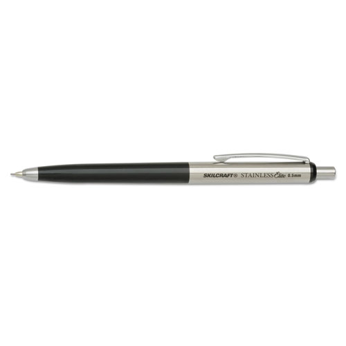 Product Details** Global Product Type Mechanical Pencils Retractable Yes Eraser (Yes/No) Yes Color Family Black Numeric Graphite Scale #2.5 HB Graphite Scale F Refillable Yes Graphite Color(s) Black Pencil Barrel Color(s) Black/Silver Pencil Barrel Material Plastic,Stainless Steel Pencil Grip Type Smooth Tapered Graphite Diameter 0.5 mm Pencil/Eraser Refill AbilityOne® SKILCRAFT® 7510-01-332-8794, 7510-01-317-6421 Pocket Clip Indicator Yes Mechanical Pencil Advance Type Top-Advance Mechanical Pencil Sleeve Type Sliding Sleeve Product Biodegradability Indicator N Product Biodegradability in Days 0 Product Compostability Indicator N Pre-Consumer Recycled Content Percent 0% Post-Consumer Recycled Content Percent 0% Total Recycled Content Percent 0% Country Of Origin US Carton Weight 2 lbs. Carton Pack Quantity 18 PK Pack Quantity 3 EA UPC 071503295101 UNSPSC 44121705 Shipping Weight & Item Dimensions Weight 0.15 lbs. Length 1 in Height 6.25 in Width 2.75 in