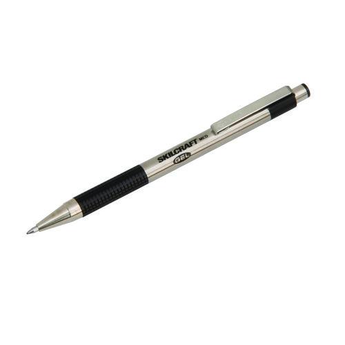 Product Details** Global Product Type Gel Pens Pen Style Retractable Pen Tip Type Conical Pen Point Size Type Medium Color Family Black Erasable Ink No Refillable Yes Pen Sub-Brand & Product Family SKILCRAFT® Zebra® Stainless-Steel Pen Type Gel Pen Pen Point Size 0.7 mm Pen Ink Color(s) Black Pen Barrel Color(s) Silver/Black Permanent/Washable Ink Permanent Archival-Quality Ink Yes Airplane-Safe Ink No Low-Viscosity Ink No Special Ink Properties Water-Based Gel Pen Grip Type Textured Visible Ink Supply No Pocket Clip Indicator Yes Manufacturer Pen Refill # JK-Refill (88112) Product Biodegradability Indicator N Product Biodegradability in Days 0 Product Compostability Indicator N Compliance Standards TAA Compliant Pre-Consumer Recycled Content Percent 0% Post-Consumer Recycled Content Percent 0% Total Recycled Content Percent 0% Country Of Origin US Carton Weight 1 lbs. Carton Pack Quantity 12 PK Pack Quantity 2 EA UPC 071503301680 UNSPSC 60121524 Shipping Weight & Item Dimensions Weight 0.063 lbs. Length 0.5 in Height 7.5 in Width 2.25 in