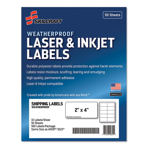 These weatherproof mailing labels are made of durable polyester to stand up against harsh weather and conditions. They resist moisture, scuffing, tearing and smudging. Permanent adhesive sticks to tough surfaces ensuring your label won’t fall off your package. Compatible with laser and inkjet printers and easy to customize makes these labels the perfect solution to your mailing and shipping needs.