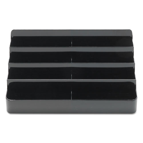 Make a great first impression and promote your business by keeping your business cards accessible! These business card holders accommodate approximately 50 cards per compartment perfect anywhere multiple team members cards need to be displayed. Angled open design allows easy access to your contact information. Ideal for creating an organized and professional desktop or countertop, while promoting your business. Perfect choice for medical and professional offices, travel agencies, retail outlets, trade show booths and more. Made of durable, recycled plastic.