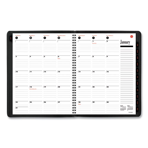 Combines monthly calendars for big-picture planning with a contemporary, weekly-planning format. High-quality paper features superior ink bleed resistance. Monthly tabs for quick reference. Weekly: one week per two-page spread and column-style appointments with past, current and future months reference. Monthly: tabbed one month per two-page spread with ruled blocks with past and future months reference. Large notes area with each week.