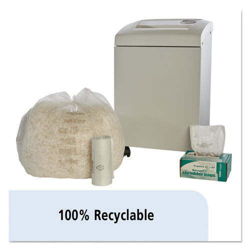 High performance shredder bags are an ideal choice for personal shredders and office/home trash receptacles. Clear color validates proper disposal of shredded documents and sensitive information.