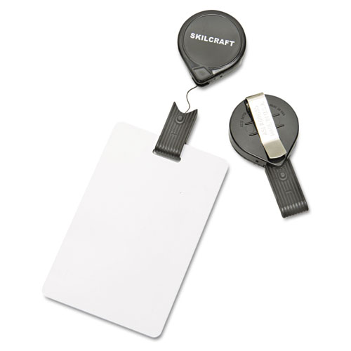 Heavy-duty ID card reel easily attaches to clothing for instant ID card access. A metal belt clip secures the badge. The reinforced vinyl strap provides added durability when holding ID cards or badge holders to the reel. The retractable cord extends 36 inches.