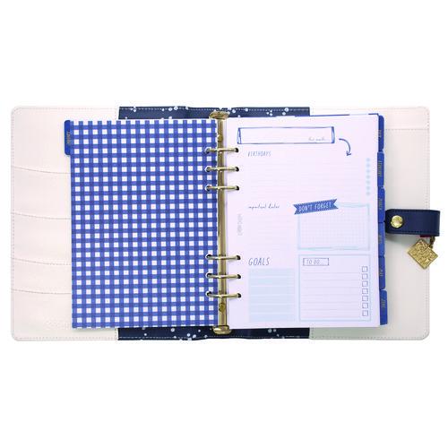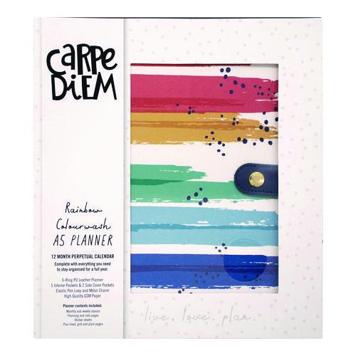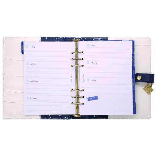 Product Details** Global Product Type Appointment Book/Personal Organizers Dated No Academic Year No Calendar Format Weekly Calendar Term 12 Months Binding Type Ring Color Family Multicolor Refillable Yes Calendar Spread Format One Week per Two-Page Spread Julian Dates No Size (Bound-Side First) 10.24 x 9.25 Binding Details Sewn Cover Theme Color Wash Cover Color(s) Blue,Green,Red,Yellow Cover Material(s) PU Leather Closure Type Button Sheets per Calendar/Planner 127 Punching Side: 6-Hole Pocket Details (4) Interior Storage Pockets Refill Type Weekly Spreads Product Biodegradability Indicator N Product Biodegradability in Days 0 Product Compostability Indicator N Package Includes (12) Monthly Tabbed Dividers,(12) Monthly Calendar Layouts,(60) Horizontal Weekly Layouts,(12) Lined Pages,(12) Grid Pages,(12) Plain Pages,(2) Acetate Bookmarks,(1) Acetate Dashboard, (1) Dashboard Insert,(3) Sticker Sheets Pre-Consumer Recycled Content Percent 0% Post-Consumer Recycled Content Percent 0% Total Recycled Content Percent 0% Country Of Origin CN Carton Weight 31 lbs. Carton Pack Quantity 12 EA Pack Quantity 0 UPC 000000000000 UNSPSC 44112004 Shipping Weight & Item Dimensions Weight 2.504 lbs. Length 10.14 in Height 2.145 in Width 9.165 in