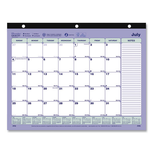 Note your important school events and get the flexibility to carry all your notes with you. Academic 13-Month Binder-Insertable Desk Pad Calendar features a one month per page, one block per day format with a ruled notes column on the right and a full-year reference calendar along the bottom, everything you need to keep your school year on track. And as it features a compact design with a three-hole-punched headband, you can use it as a desk-pad, a three-ring binder insert and as a wall calendar, whichever way suits you best, when it suits you best. A reinforced chipboard backer serves as a great writing surface; however you choose to use it, and each sheet is perforated to help ensure clean separation.