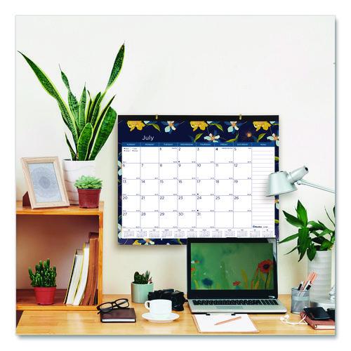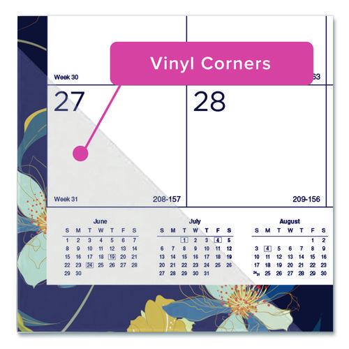 Track important school events, exam days, project due dates and more with this Academic 18-Month Desk Pad Calendar. Its one month per sheet, one block per day format features a handy ruled notes column on right-hand margin to ensure you have plenty of space to capture all the important details, and a full-year reference calendar at the bottom of each sheet helps make long-term planning easy. A reinforced chipboard back provides a solid writing surface, and clear vinyl corners keep the sheets flat without obscuring your view. Each sheet is printed on high-quality paper to reduce the potential for ink-bleed-through, and easy-tear perforations enable clean removal at the end of the month. The secure-bind headband keeps everything neatly together, while its pre-punched eyelets deliver dual-purpose, desk-pad/wall-calendar flexibility.