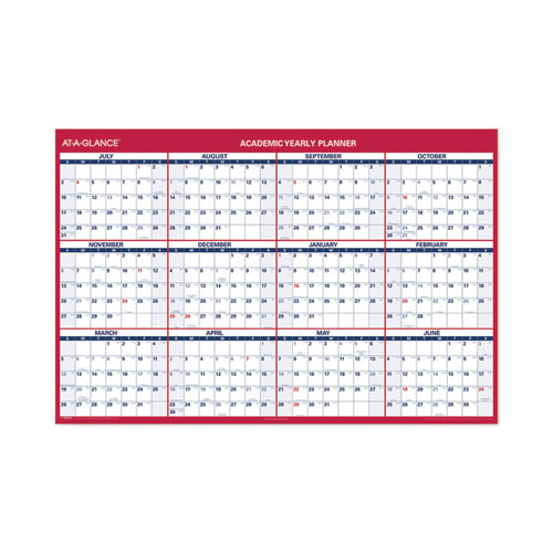 Schedule your way with a wall calendar that fits your space. The reversible calendar displays 12 months in a vertical yearly layout on one side and a horizontal layout on the other. Write-on/wipe-off surface makes for quick and easy update. The AT-A-GLANCE Academic Vertical/Horizontal Erasable Wall Calendar is the perfect tool for plans that are constantly changing. Calendar covers a 12 month date range from July-June with Julian dates for academic planning. Choose the orientation which best fits your space. Blocks measure 1.69″ x 1.63″ on one side and 1.44″ x 2″ on the other for plenty of space to write in your schedule and notes. Bold, large print and bright white background makes notes easier to see and read. Wet-erase marker included.