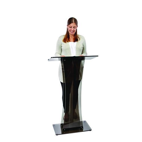 Product Details** Global Product Type Freestanding Lecterns Color Family Black Material(s) Acrylic Overall Width 26″ Height (Max) 47″ Color(s) Black Wired/Wireless Wireless Overall Depth 13″ Number of Shelves 0 Top Thickness 0.5″ Platform Dimensions 26.8″ x 14.3″ Series Name 661-02 Series Product Biodegradability Indicator N Product Biodegradability in Days 0 Product Compostability Indicator N Package Includes (8) Screws Pre-Consumer Recycled Content Percent 0% Post-Consumer Recycled Content Percent 0% Total Recycled Content Percent 0% Country Of Origin CN Carton Weight 43 lbs. Carton Pack Quantity 1 EA Pack Quantity 0 UPC 840309412513 UNSPSC 45111502 Shipping Weight & Item Dimensions Weight 43 lbs. Length 49 in Height 13 in Width 17 in Warranty Manufacturer’s one-year warranty.