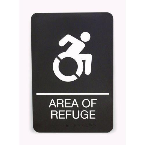ADA Sign, Area of Refuge, 6 x 9, Black Face, White GraphicsADA Sign, Area of Refuge, 6 x 9, Black Face, White Graphics